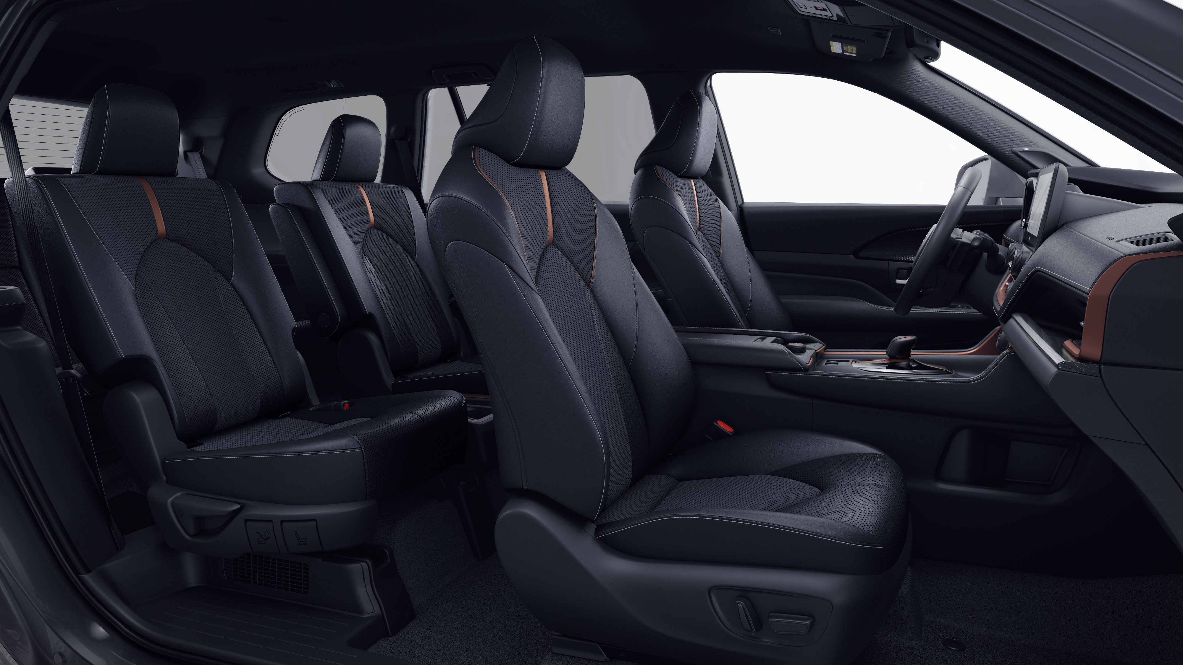 - Leather-trimmed with Ultrasuede® front- and second-row seats; heated and ventilated front seats; 10-way power-adjustable driver's seat including power lumbar support; 8-way power-adjustable front passenger seat; seat memory function