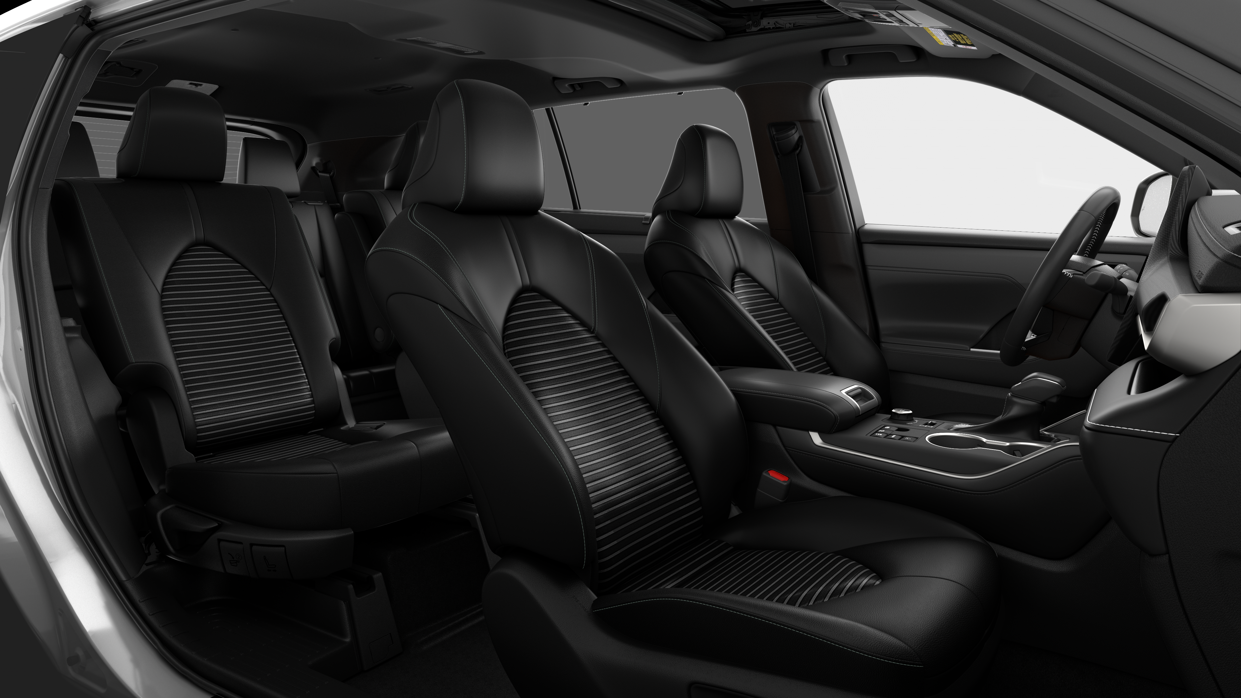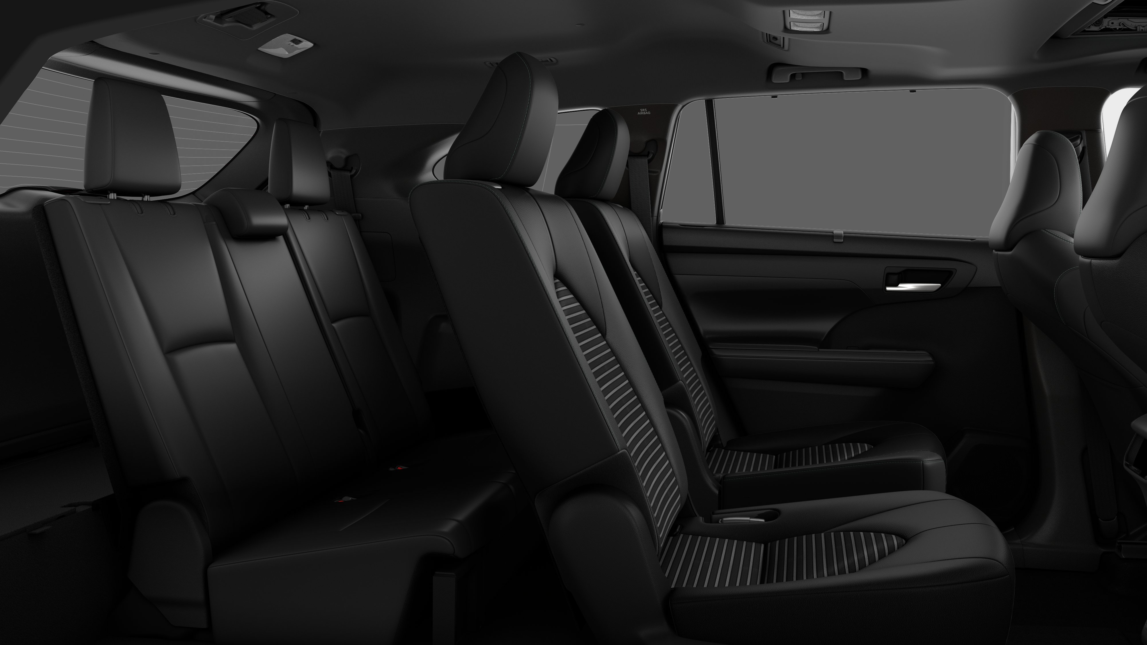 - 7-passenger seating with second-row fold-down captain's chairs and fold-down inboard armrests, adjustable headrests and two cup holders mounted on the floor; and 60/40 split, fold-flat third-row seats with sliding headrests and recline function