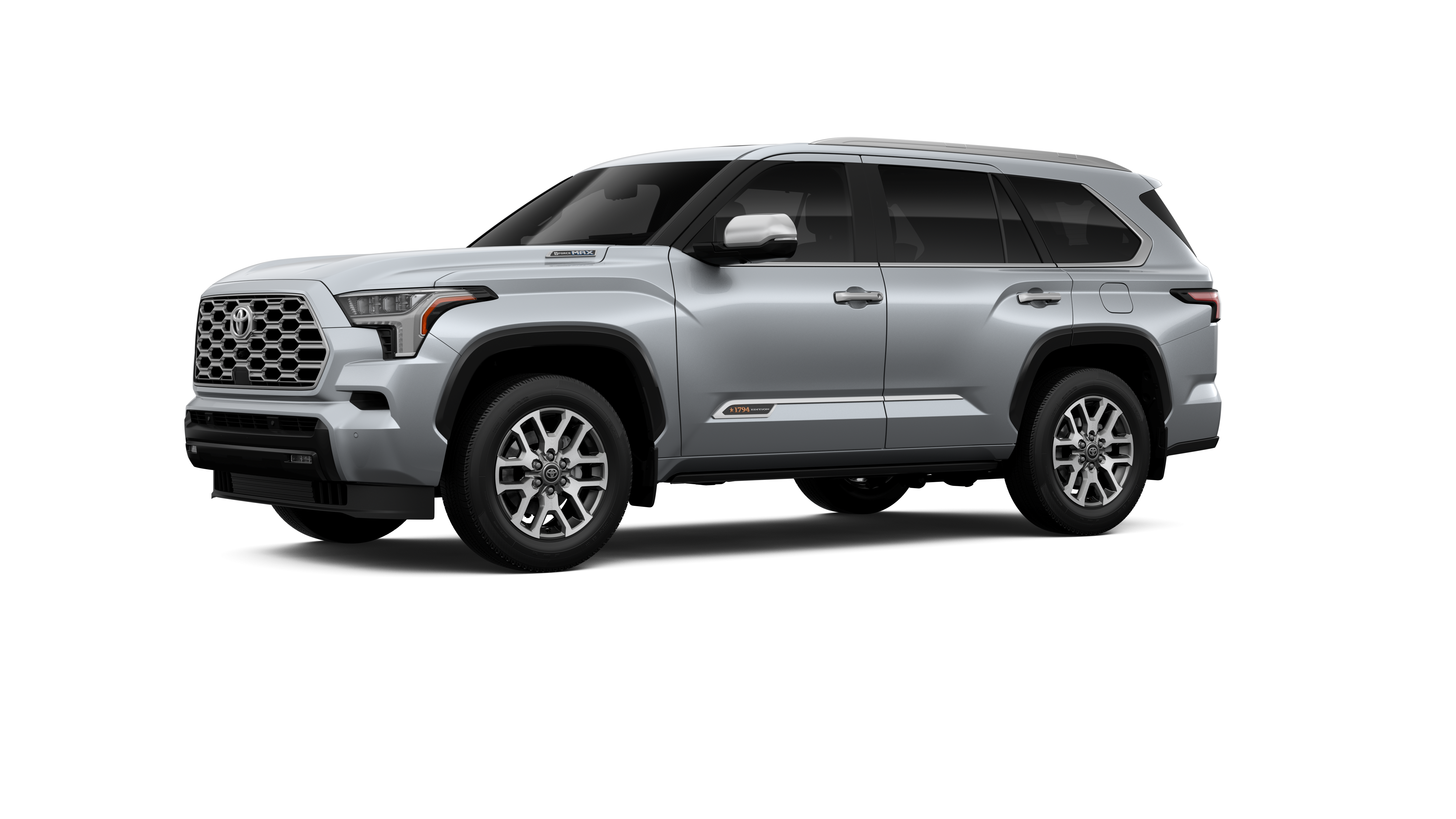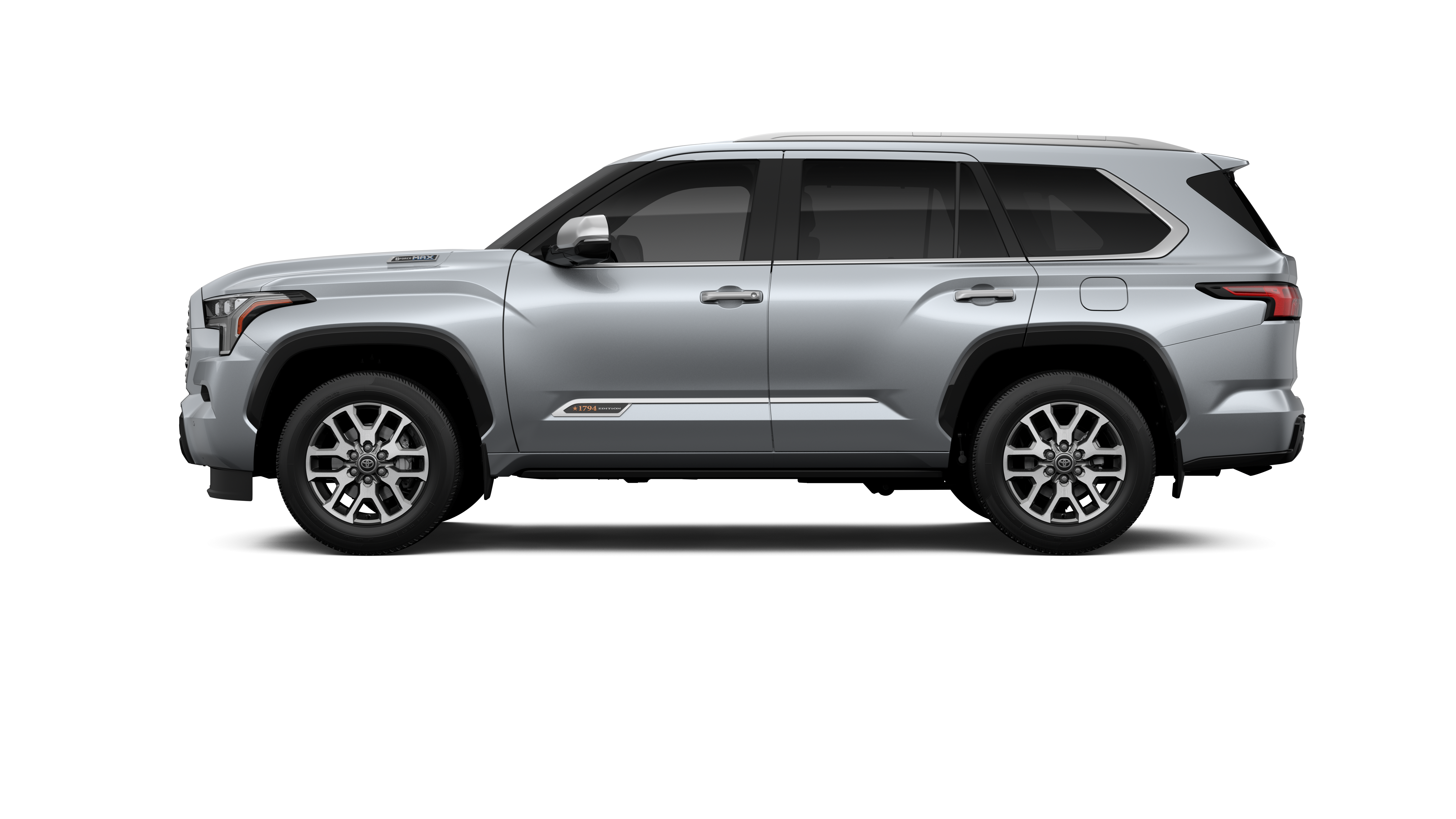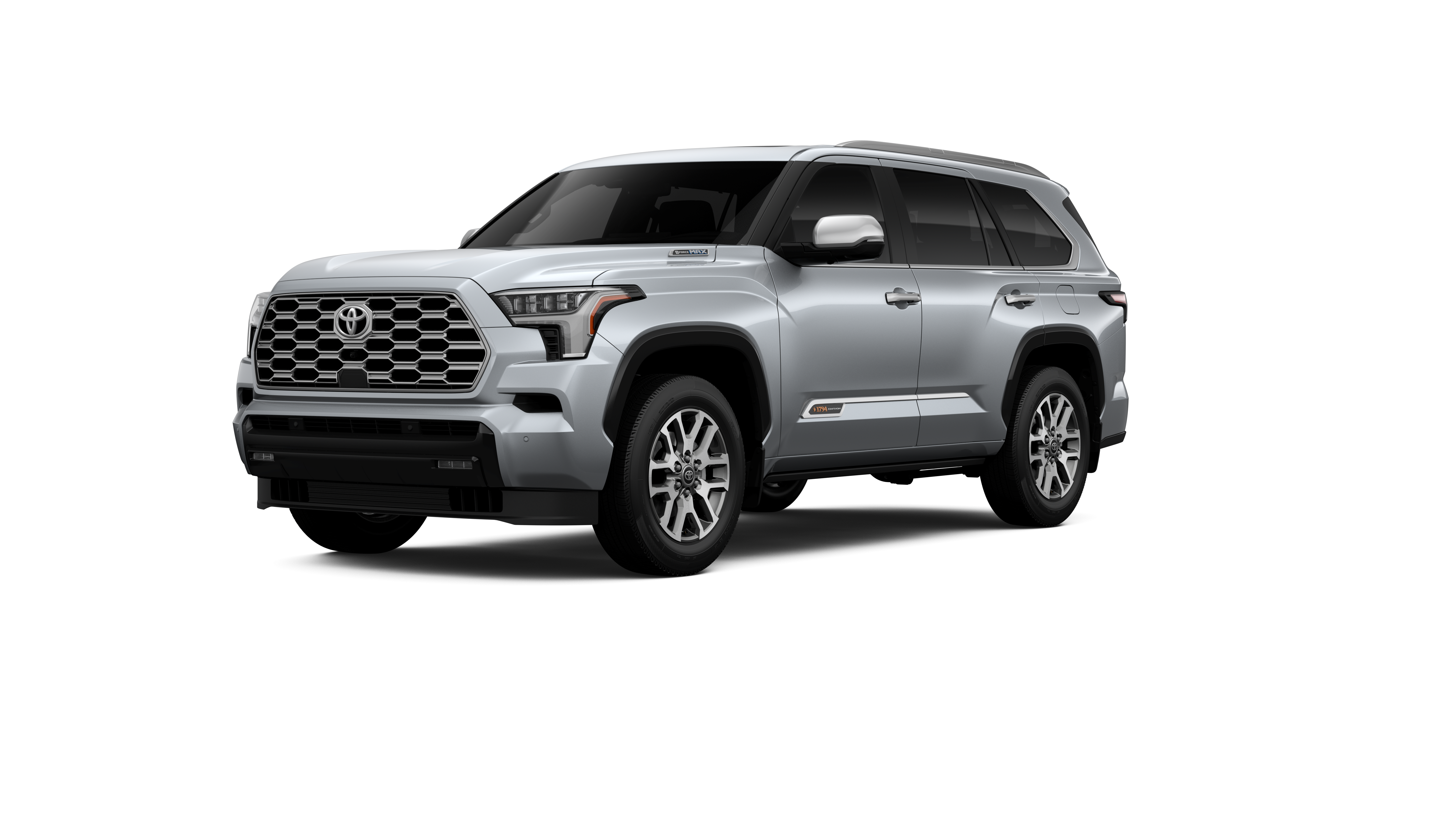 - Bright-chrome "SEQUOIA" rear door badge, chrome "1794 EDITION" door badge and garnish, door handles, window molding and mirror caps; color-keyed tailgate spoiler; black-painted overfenders