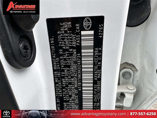 Convenience Package, Ash Cloth, Blind Spot Monitor w/Rear Cross Traffic Alert. Super White 2019 Toyota Camry LE FWD 8-Speed Automatic 2.5L I4 DOHC 16V